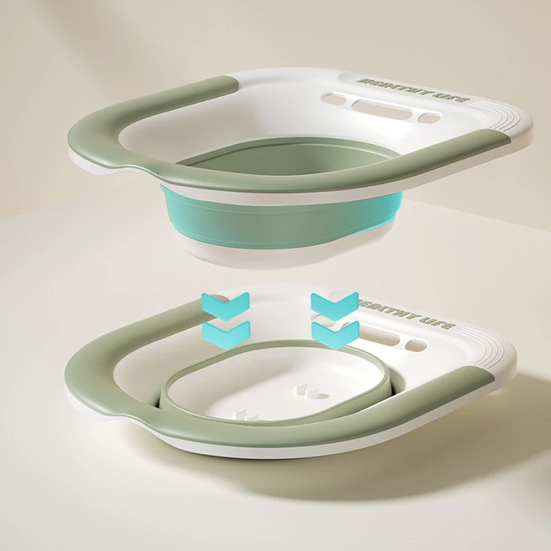 Dobrável: A banheira de assento para vaso sanitário tem um design dobrável e com um orifício para pendurar, pode ser dobrada e pendurada quando não for usada, ocupa pouco espaço e fácil de transportar para qualquer lugar.